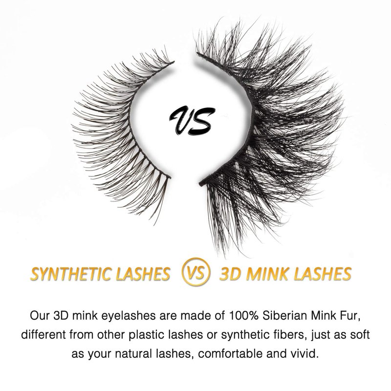 - 2.【Premium Mink Fur - Soft & Comfortable】 -- 100% siberian mink fur eyelashes. Real full strip mink eyelashes feel more comfortable than synthetic lashes. Dramatic soft, natural curved, like human natural lashes, but not irritate to your eyes.
