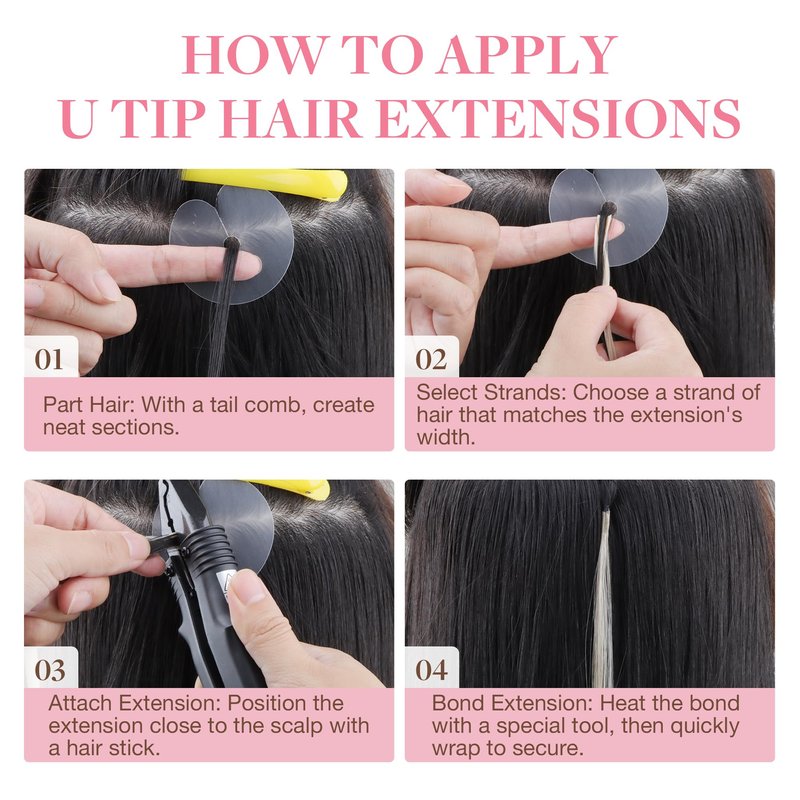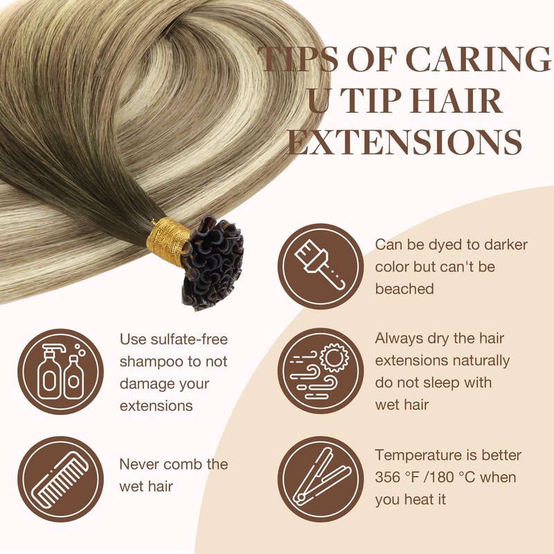 - Preserving Your Extension's Brilliance: Transform your look - straighten, curl, wash, or style. However, avoid lightening the color to ensure longevity. To maintain the lushness of your U Tip real human hair, comb gently from ends to roots and pamper with hair oil weekly.