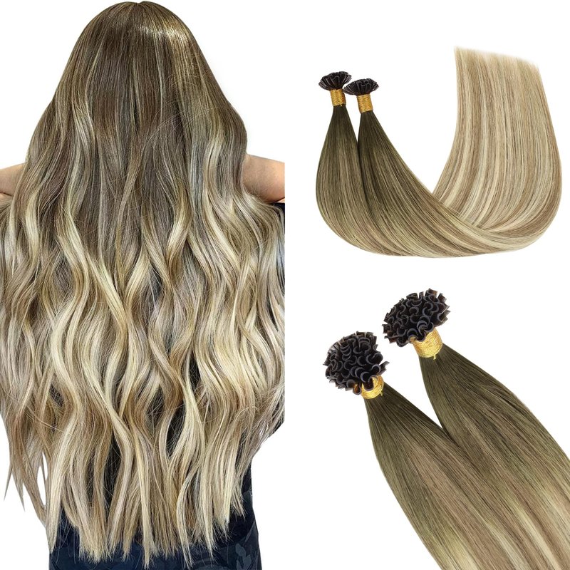 GOO GOO U Tip Hair Extensions Real Human Hair, 22inch 50g 50S, Hot Fusion U Tip Hair Extensions, Invisible Remy Hair Extensions, 3/8/613 Balayage Walnut Brown to Ash Brown and Bleach Blonde