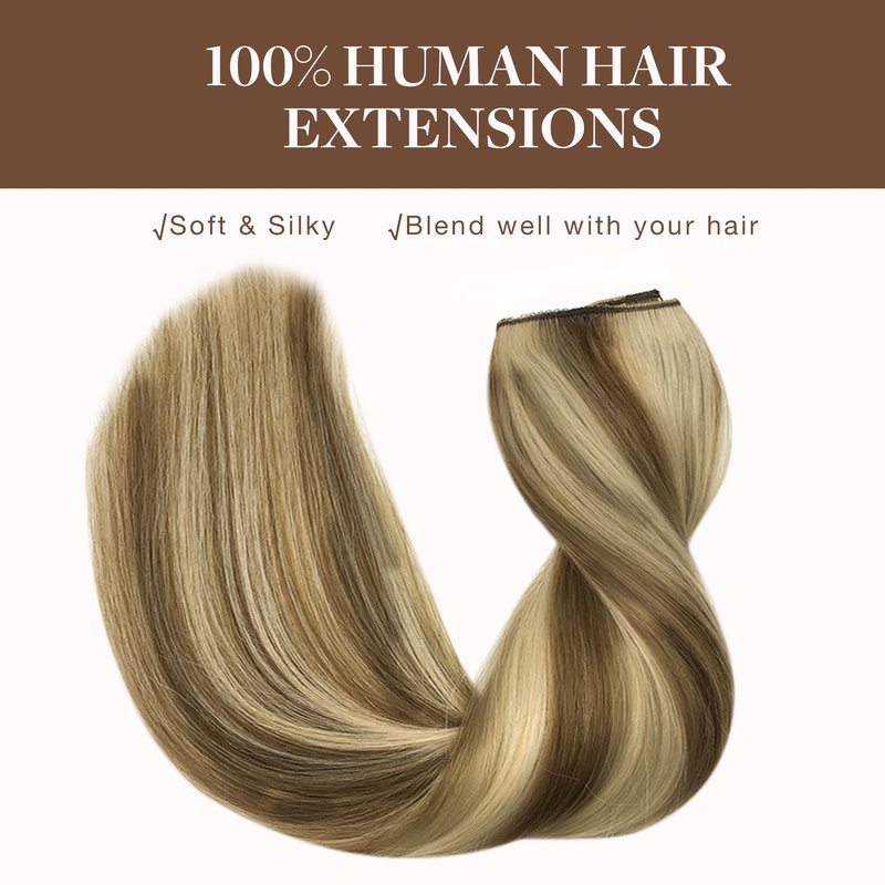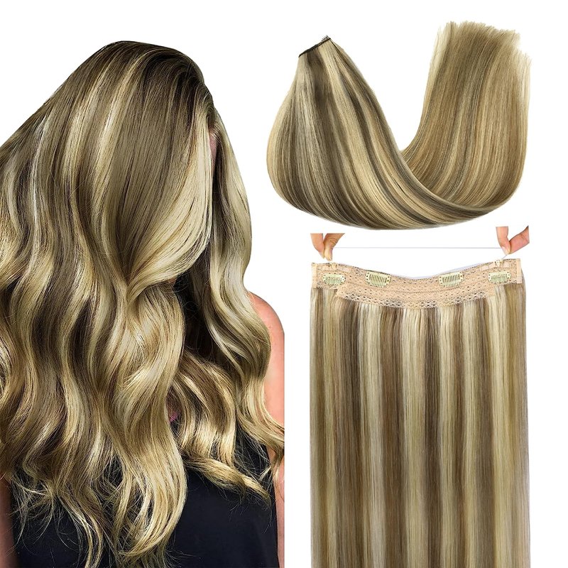 GOO GOO Wire Hair Extensions Real Human Hair, 12inch 70g Medium Brown Highlighted Blonde, Invisible Wire Hair Extensions with Transparent, Seamless Fish Line Hairpiece, Straight Remy Hair Extensions