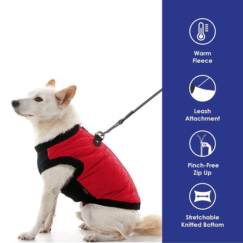 Gooby Fashion Vest Dog Jacket - Red, Small - Warm Zip Up Dog Bomber Vest with Dual D Ring Leash - Winter Water Resistant Small Dog Sweater - Dog Clothes for Small Dogs Boy or Medium Dogs