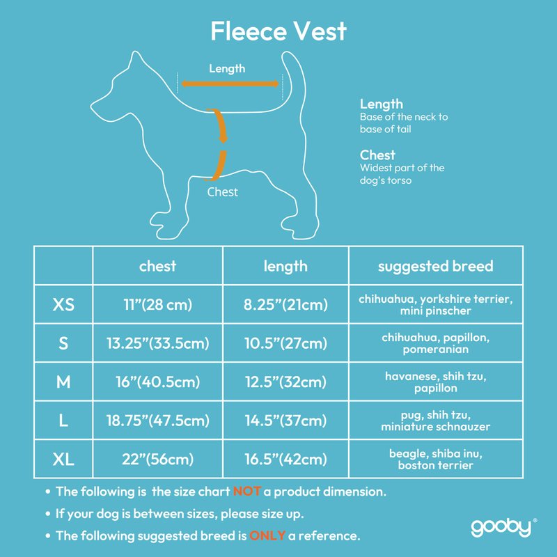 - Soft Fleece to Keep Your Small Dog Warm All Winter Long - When the cold weather hits, make sure your small dog isn’t shivering and stays warm with the soft and comfortable Gooby Fleece Dog Vest. Made with 100% polyester to keep moisture out like freezing rain or snow, and to help keep warm air in, so your dog always stays warm. This small fleece dog vest is safe, durable, and made to last.