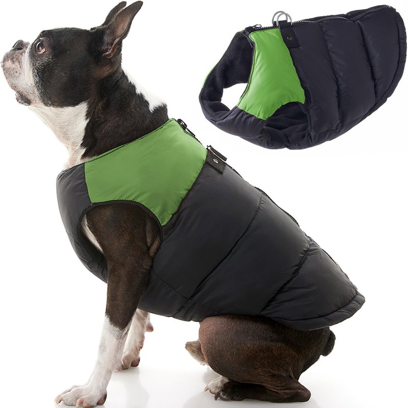 Gooby Padded Vest Dog Jacket - Green, X-Small - Warm Zip Up Dog Vest Fleece Jacket with Dual D Ring Leash - Winter Water Resistant Small Dog Sweater - Dog Clothes for Small Dogs Boy and Medium Dogs