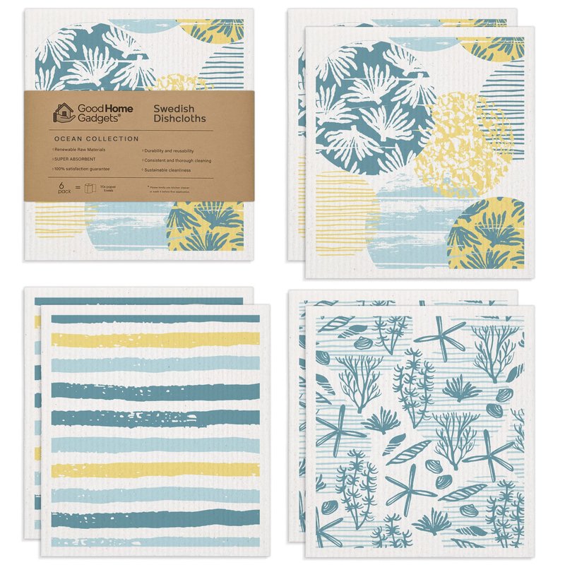Good Home Gadgets Swedish Dishcloths for Kitchen | 6-Pack Ocean Collection | Absorbent Swedish Dishcloths | Reusable Swedish Dishcloth, Eco-Friendly Cellulose Sponge Sweedish Dishtowels