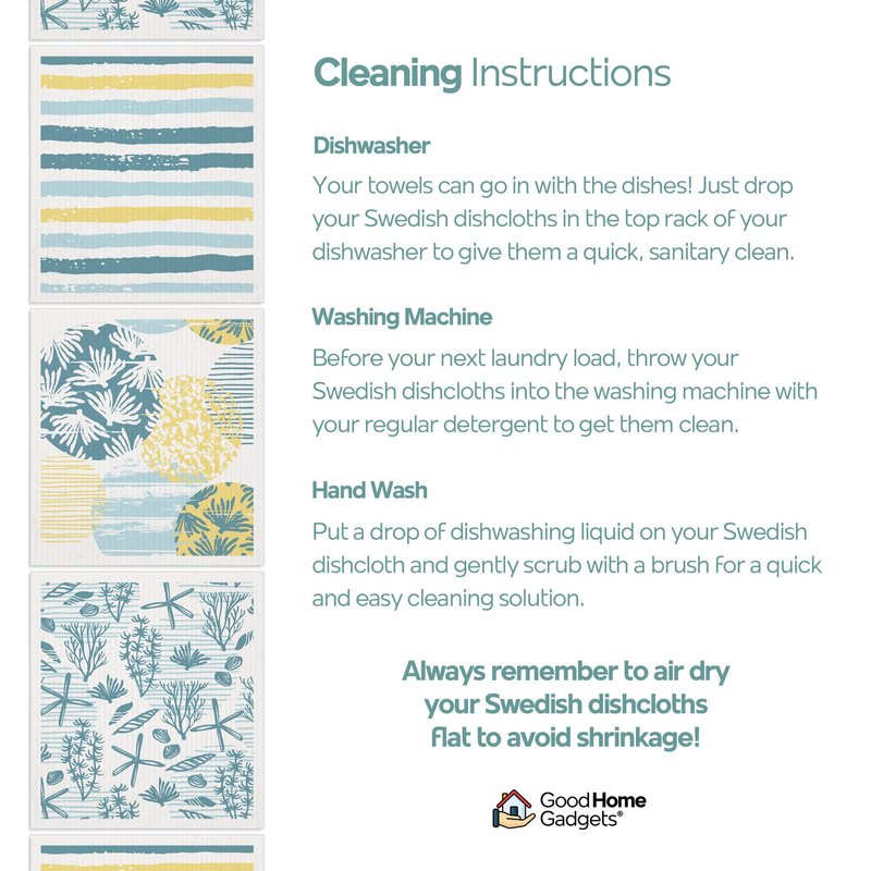 - 🏠 Home & Kitchen - Clean up messy babies, wash dishes, and absorb spills quickly and easily with sweedish dishtowels. Pop your Swedish dish clothes in the dishwasher or washing machine to clean it.