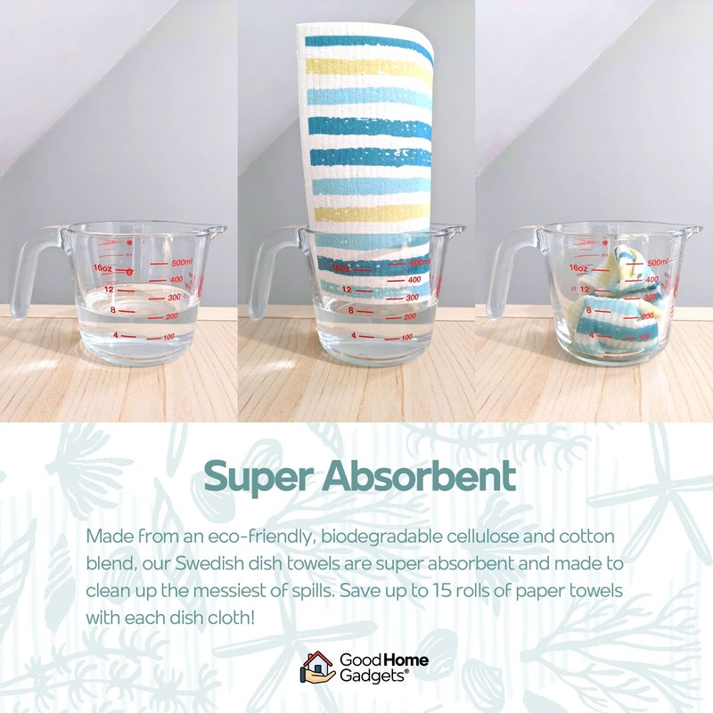 - 💦 Swedish Dishcloths for Kitchen are Super Absorbent - Our Sweedish dishtowels absorb big spills and messes better than paper towels. Instead, grab our reusable Swedish dishcloths for your kitchen!
