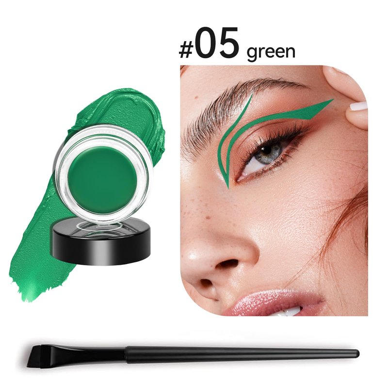 Eyeliner Gel Set,Long Lasting Waterproof Gel Eyeliner With 5.51 IN Long Eyeliner Brush,High-Intensity Pigments Smudge-Proof Eye Liner Makeup Creamy Eyeliner Gel 5G-Green