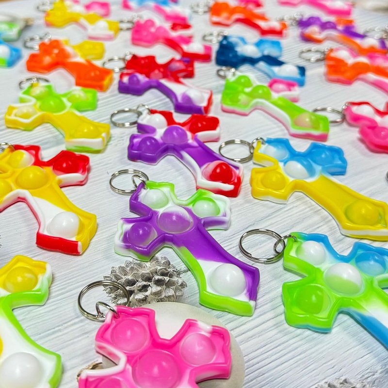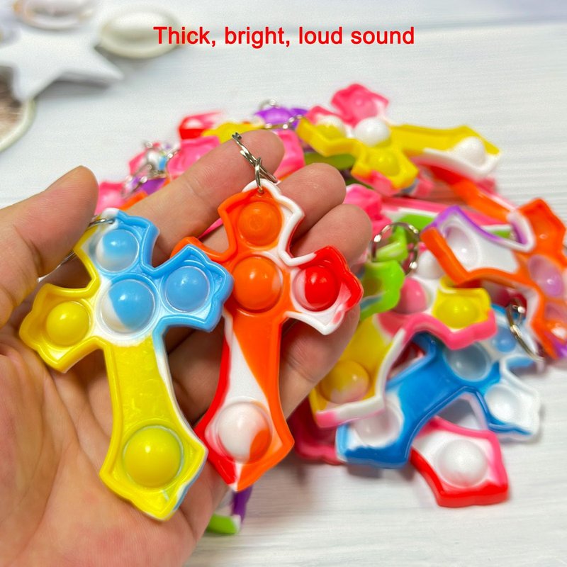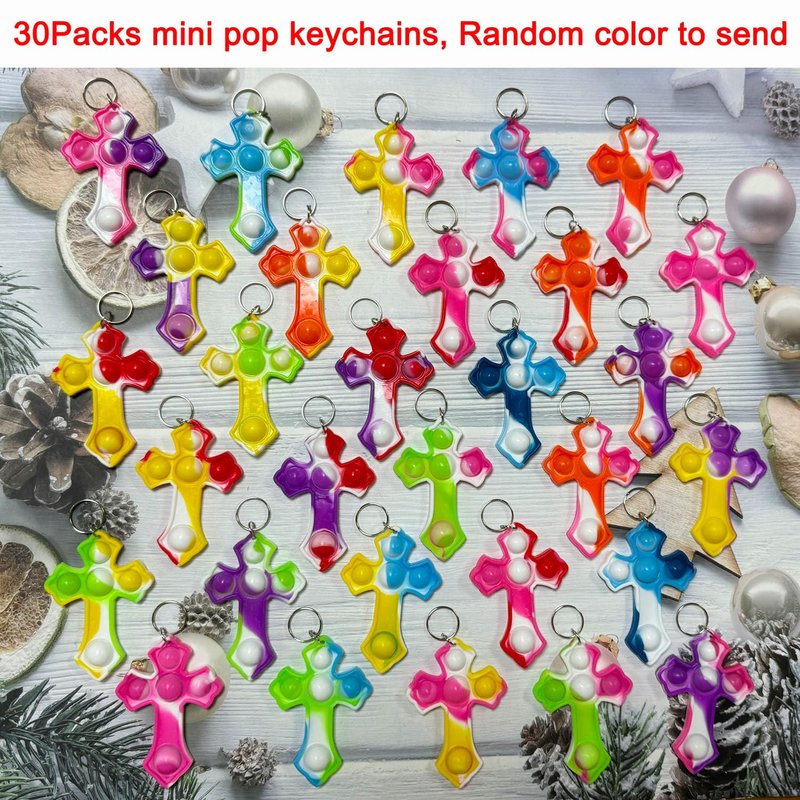 - 【Package Including】30 packs mini pop key chains(30*Cross,) ,Random color to send. All push pop fidget sensory sets are great quality, Your satisfaction is our duty. Please feel free contact us, If you have any question.