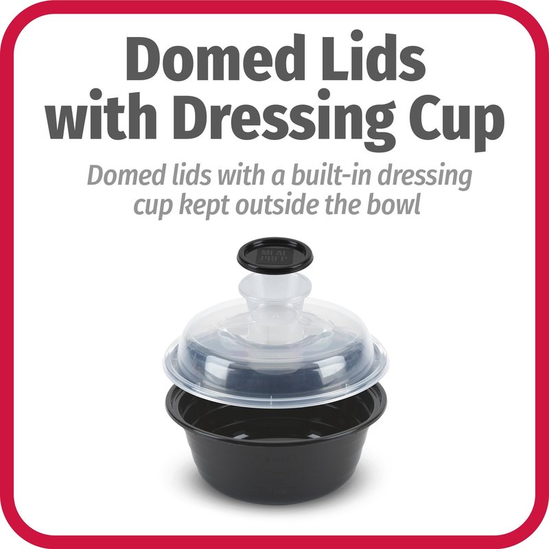 - Domed lid with room to shake and toss salad