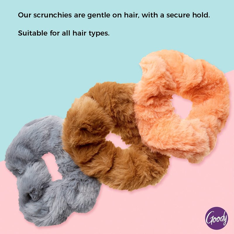 Goody Hair Scrunchie - 3 Count, Faux Fur - Help Keep Hairs In Place - Hair Accessories to Style With Ease and Keep Your Hair Secured - For All Hair Types - Pain Free