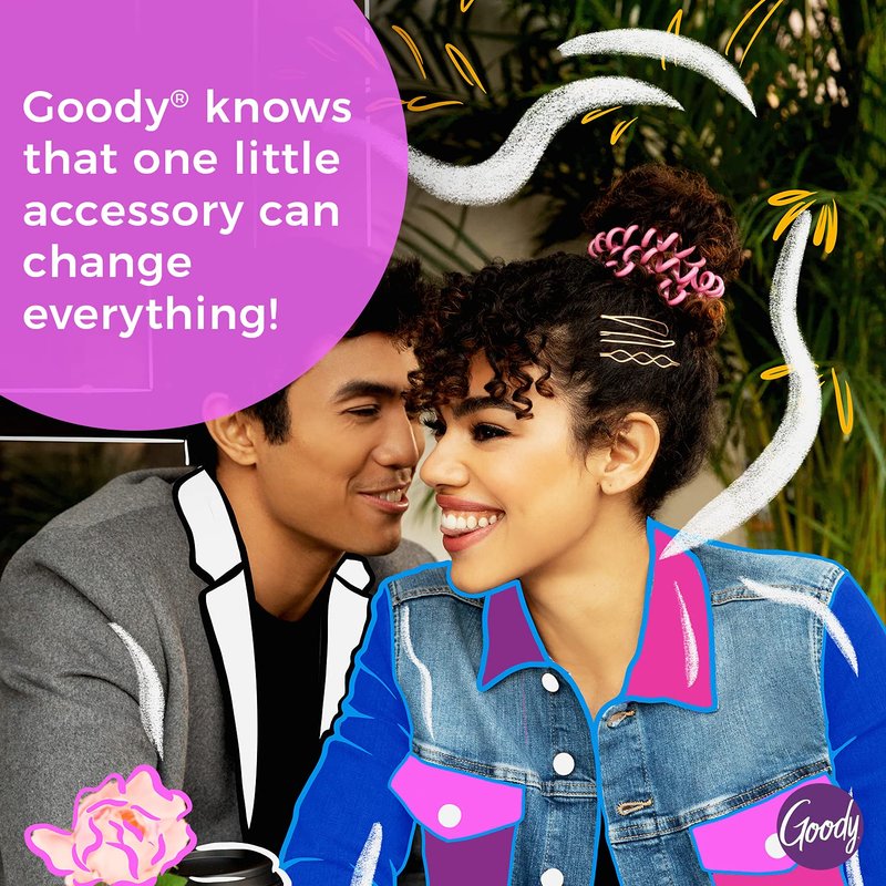 - Goody: Bringing style and innovation to your accessory game, Goody believes that fun and function are not mutually exclusive. Goody is with you for every moment of every day with bright prints, patterns, and fashion accessories to step up your game and never-fail essentials for styles that last. Because Goody knows, one little accessory can change everything