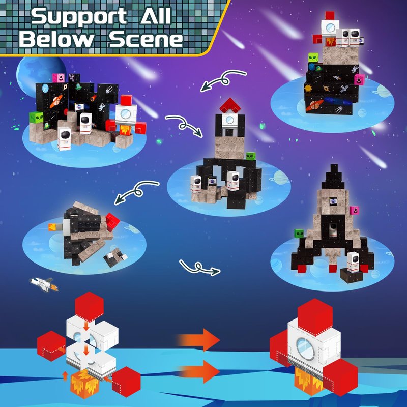 - SPACE EXPLORATION THEME:This set includes 100 magnetic blocks, each 0.8 inches long, featuring over 21 unique styles. Stimulate your child's creativity and imagination while building a unique urban space exploration adventure.