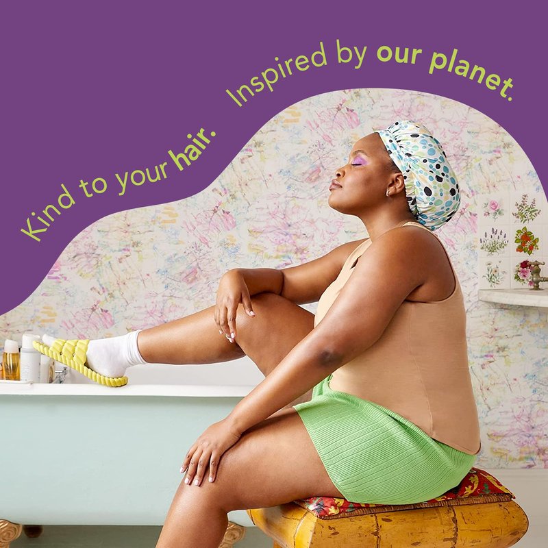 GOODY Planet Shower Cap,1 Count - Green Dots - Protect Your Hairstyle While Remaining Comfortable - Hair Accessories for Men,Women,Boys,& Girls - Made with Recycled Ocean-Bound Plastic