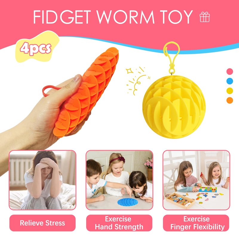 - 【Stress and Anxiety Relief】Designed specifically for stress and anxiety relief, the Fidget Worm Toy provides a therapeutic outlet for individuals of all ages.