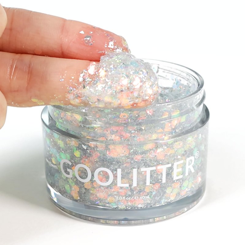 Goolitter Face, Body & Hair Holographic Clear White Glitter Gel [Snowy Cloud] 2oz (60mL) | Chunky | K-Beauty | Halloween, Festival, EDM, Rave, Party, Concert, Costume Makeup| Vegan, Cruelty Free