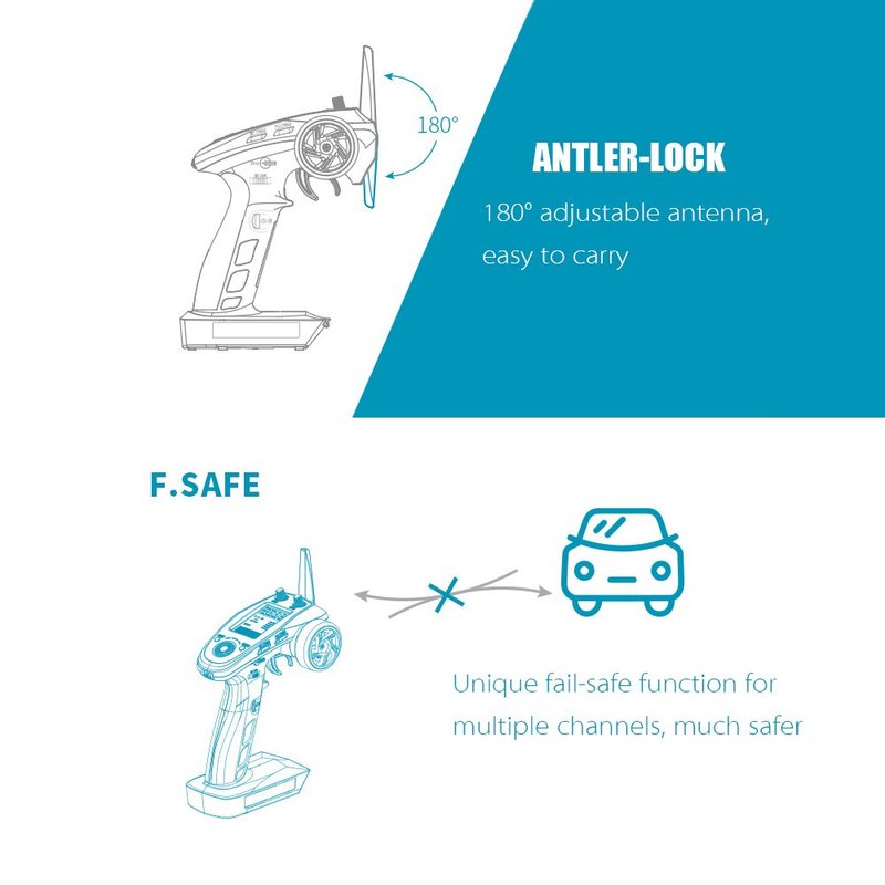 F.SAFE Function (Fail-Safe Protection): This function can protect the safety of the model when the receiver can not receive the signal from the transmitter normally, and move the actuator arm to the pre-set position.