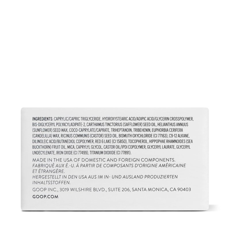 - Lip and Cheek Tint: goop Beauty's Colorblur Glow Balm delivers an effortless translucent pop of color that works anywhere the sun might hit your face—cheeks, lips, brow bones, temples, and beyond.