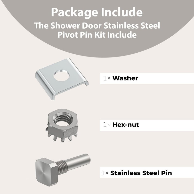 - Complete Kit: With our Shower Door Stainless Steel Pivot Pin, you get everything you need in one package, including a stainless-steel pivot pin, a hex nut, and a washer. No need to hunt for separate parts; we provide a convenient all-in-one solution.