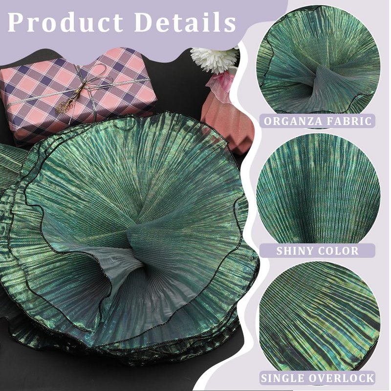- Wide Application: Iridescent ruffled trim offers a wide range of applications, making it ideal for decorating bridal gowns, bridal sashes sewing, hair flowers, queen gowns, packaging, and also transforming your old clothes into different dress, designing your own dresses.