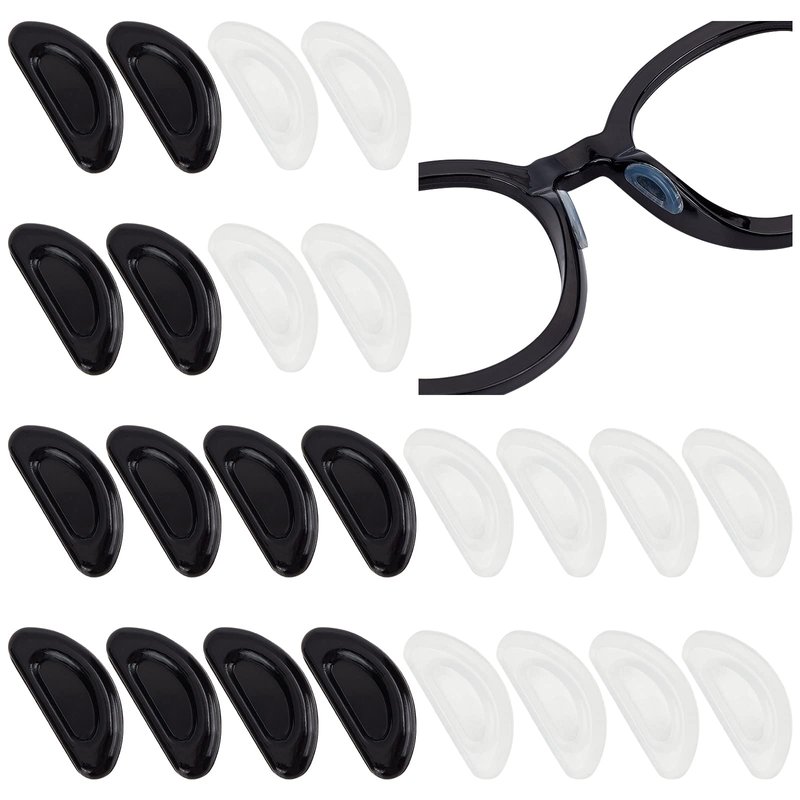 GORGECRAFT 1.5mm 24 Pairs Eyeglasses Nose Pads D-Shape Soft Silicone Adhesive Anti-Slip Air Chamber Nose Pads Grips Cushion for Plastic Frame Eyeglass Glasses Sunglasses (Transparent and Black)