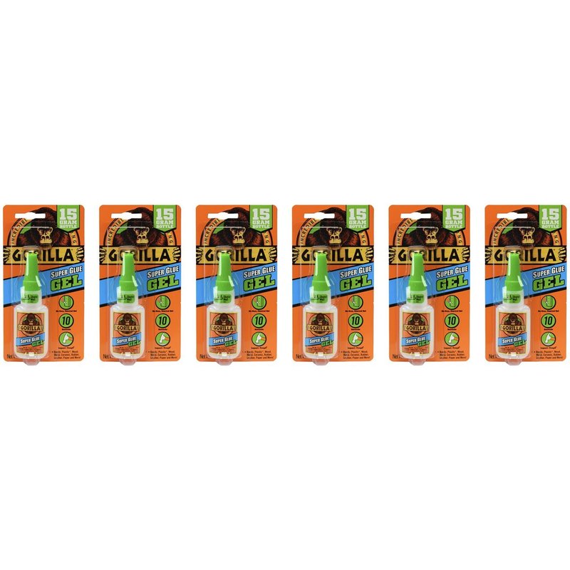 Gorilla Super Glue Gel, 15 Gram, Clear, (Pack of 6)