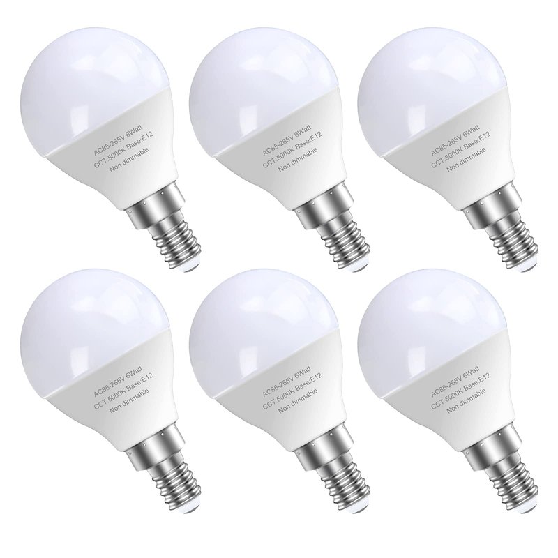 GOSCHE 6 Pack Bright Ceiling Fan Light Bulbs, 60 Watt Equivalent, E12 Led Bulb, A15 Shape Candelabra Base Chandelier Light Bulb, 120V Small Bulb, Non-Dimmable, Daylight 5000K, 6 Pcs