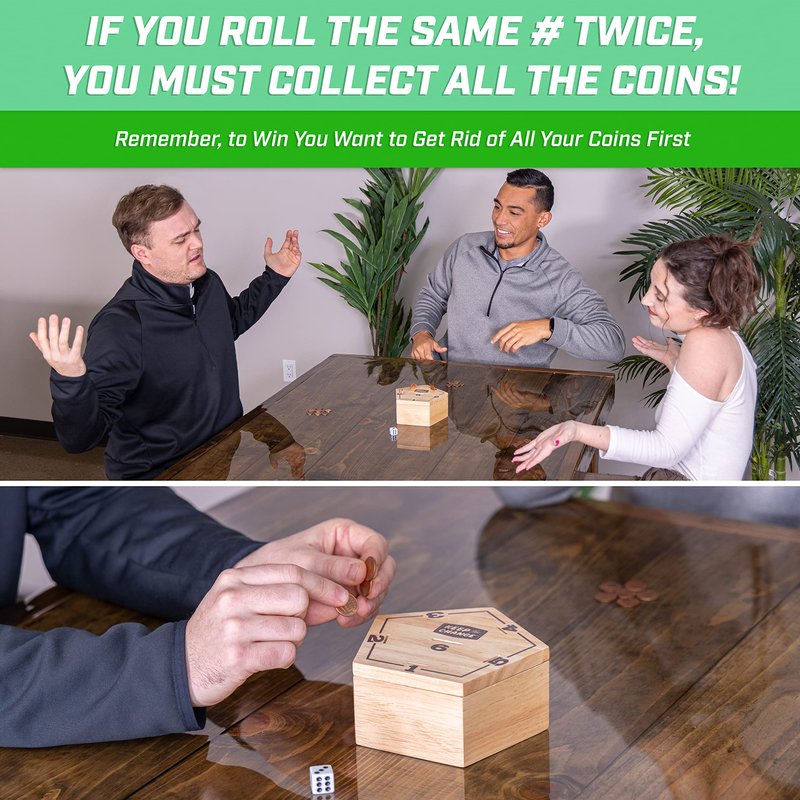 • KEEP THE CHANGE: An exciting dice game of chance everyone can enjoy; set includes premium wood game box, 2 dice and full game rules