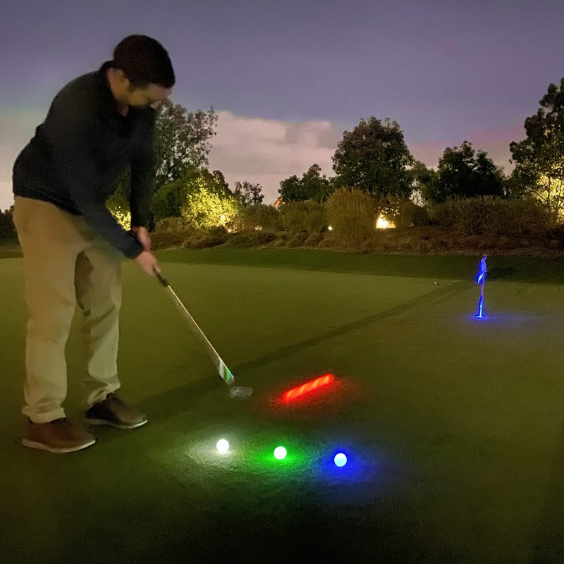 - NIGHTTIME PLAY: Take the fun of golf into the night; The balls are impact activated with a 10 minute timer; Use for nighttime chipping or putting practice, or play a short course game with friends and family