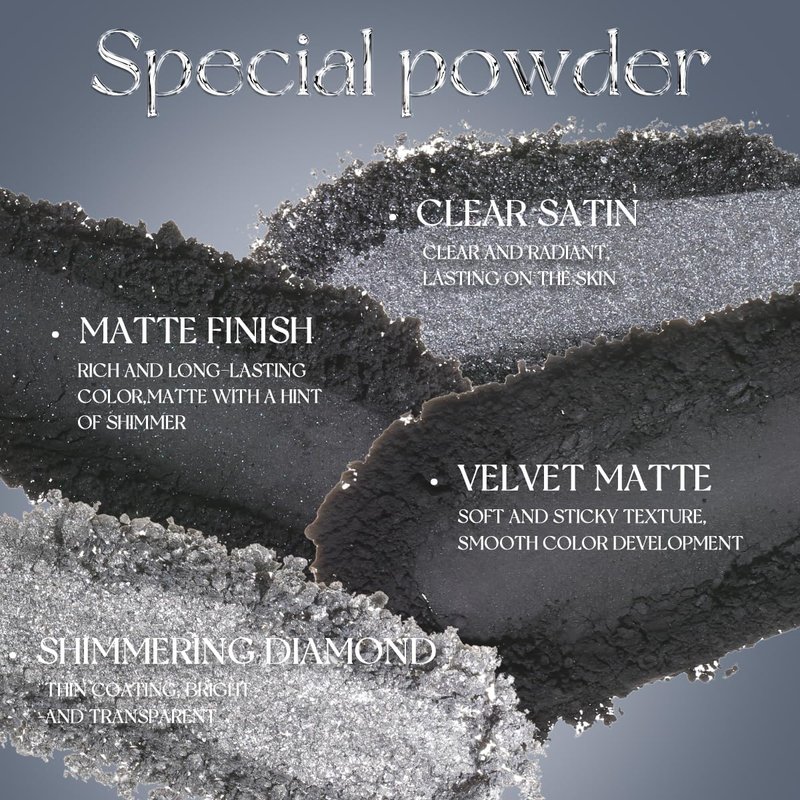 - Ultra-Pigmented Smokey Shades :Featuring black, white, gray, and silver tones in matte, shimmer, and glitter finishes, this palette delivers intense color payoff, ideal for creating bold gothic smokey eye looks for any occasion.