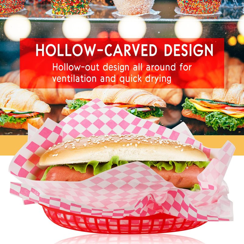 GothaBach 24 Pack Fast Food Baskets, Plastic Fast Food Restaurant Baskets, Bread Fry Baskets Serving Tray for Hot Dogs, Chicken, Burgers, Sandwiches, Fries(Red)