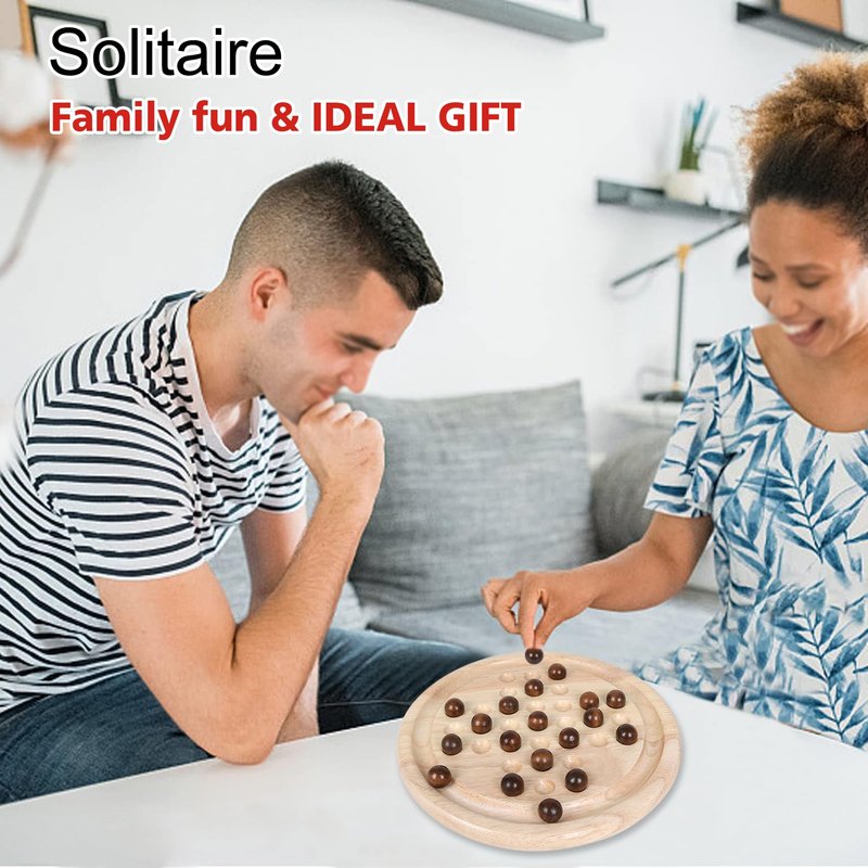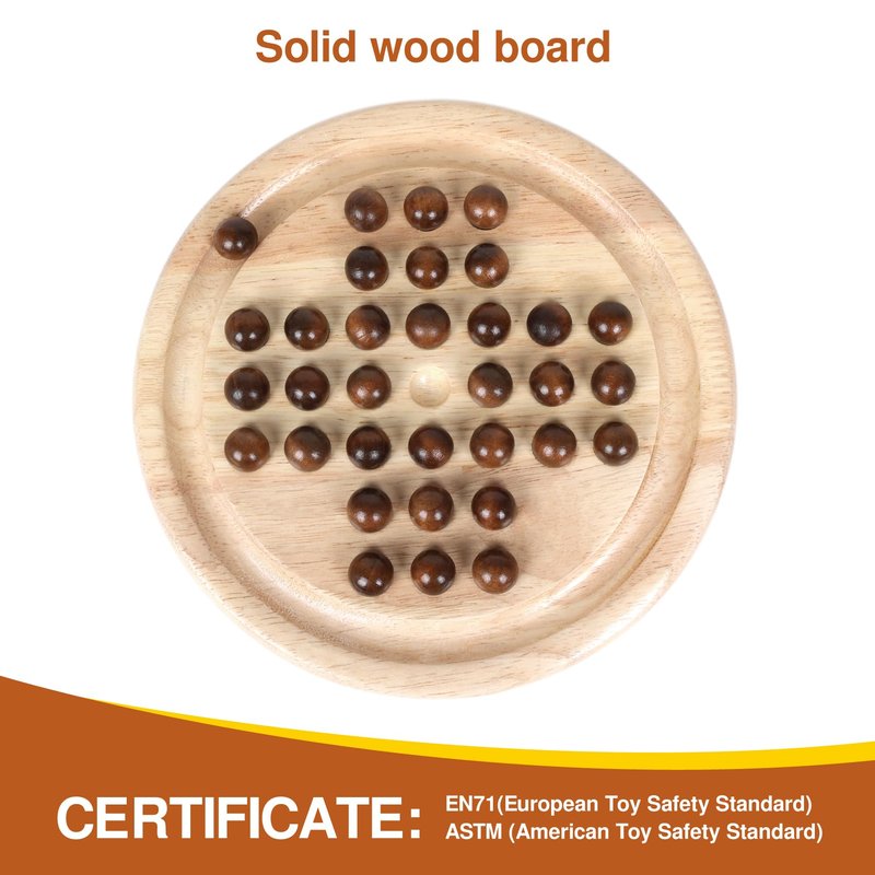 - 【SAFE AND DURABLE】This solitaire is made from superior rubber wood, which is tough and dense, well-constructed and feels smooth.The wood is certified by the Forest Stewardship Council (FSC) and meets universal sustainability standards. All the materials pass the toy safe test of EN71 (European Toy Safety Standard) and ASTM (American Toy Safety Standard).