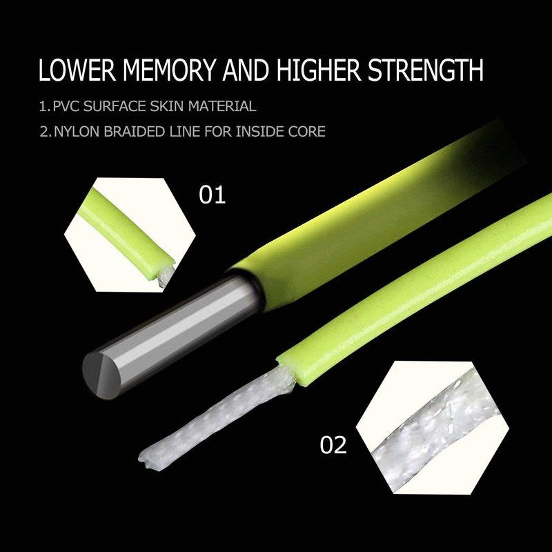 • LOW MEMORY & HIGHER STRENGTH//The inside core is made of dacron braided line, lower memory and higher strength.With a low stretch braided core which give the line a high degree of stiffness, strength and elasticity as well which will give you’re line the best possible chance to perform exactly how you need it to. The surface of the line lowers friction and also makes it durable in harsh conditions.