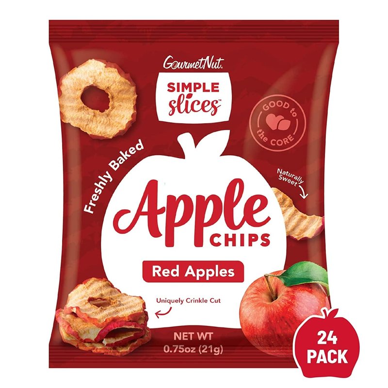 Gourmet Nut Simple Slices Organic Baked Apple Chips, USA Grown Apples, No Added Sugar, Red Apples, 75oz (Pack of 24)