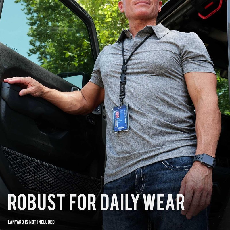 - PATENTED SPRING-LOADED CARD HOLDING SYSTEM: The only badge holder equipped with steel wire spring that holds cards well, whether loaded with 1 or 4 cards. Wire spring holds cards on the sides preventing damage to the front or back of your cards.