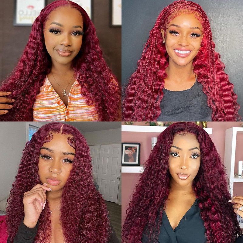 - Red Lace Front Wigs Human Hair Detail: The color is 99j burgundy, which is very popular this year. The length of 18-32 Inch meets all your needs. 13x4 deep wave lace front wigs human hair 180%, can be used on any occasion and as a holiday gift.