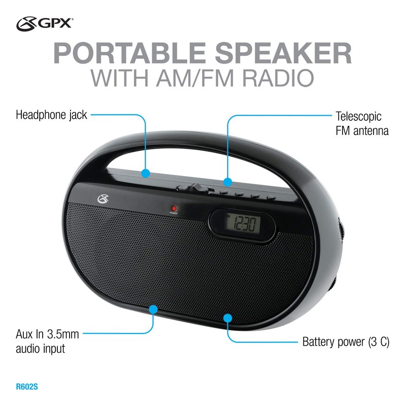 GPX, Inc. R602B Portable AM/FM Radio with Digital Clock and Line Input (Black)