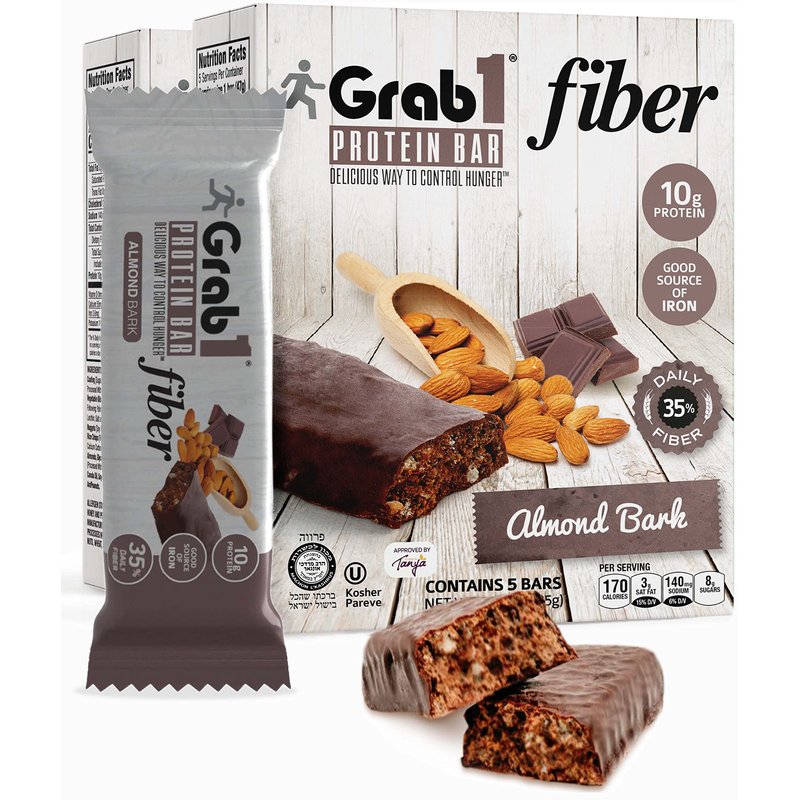 Grab1 "High Fiber" Dairy Free Protein Bars | 9 Grams Fiber | 10 Grams Protein | Almond Bark Flavor (2 Pack - 10 Bars) | Controls Hunger | Low Calorie | Lower Net Carbs | Certified Kosher | Perfect for Snacking