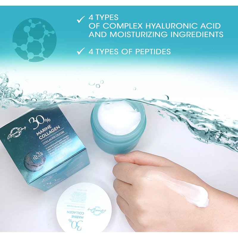 - Marine Collagen Cream: Anti-Aging & Firming Cream with Hyaluronic Acid and 30% Marine Collagen supports cell renewal, boosting elasticity & skin radiance. The ingredients work in harmony, reducing the signs of age for a younger-looking face