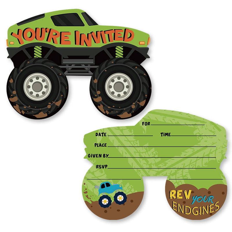 Grace Yonks Truck Bash Invitation, Truck Birthday Invites, 20 Invitations and Envelopes, Birthday party Invitations, Birthday Party Supplies.(088)