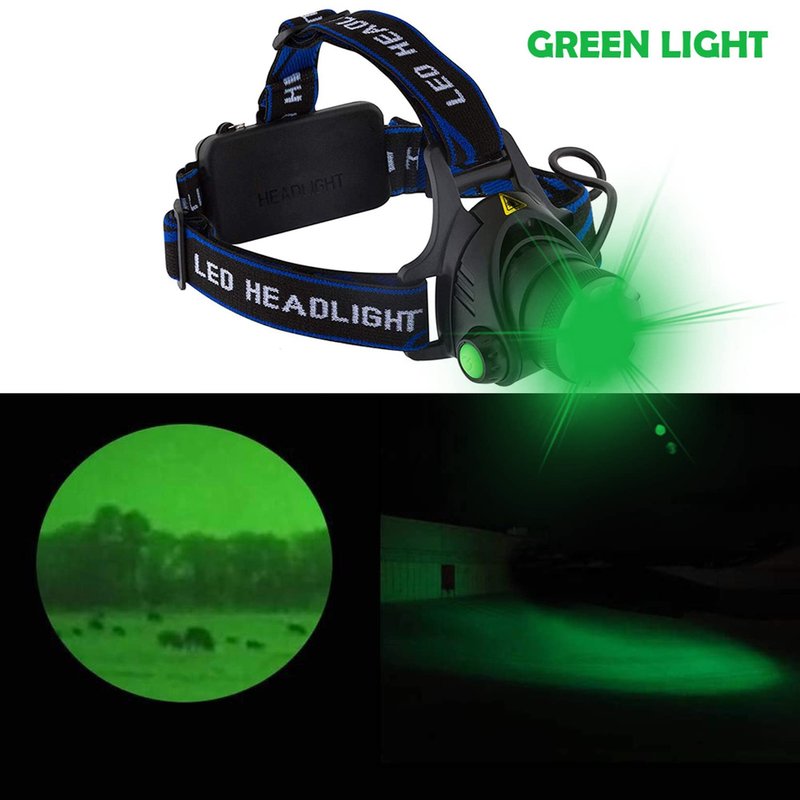 - 【Greenlight Headlamp】Hunting led headlight frees your hands and Greenlight allows you to get more prey. Green Headlamp for running, walking, fishing, hunting, hiking, cycling, reading, caving, auto repair & emergency kit or DIY as a waist lamp, Helmet Light, bike headlight.