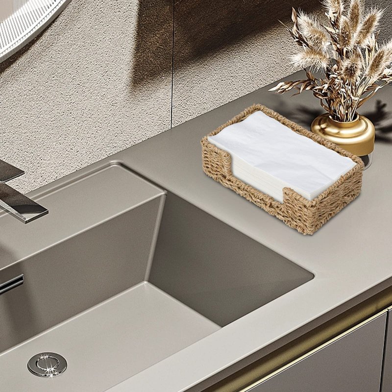 - ✅[Rustic Update and Addition] With natural rural look and finish, our hand towel basket holder fits well with most home decors and keep a clutter-free space. The rattan napkin holders for bathroom will not only can help you organizing napkins, but also can store small plants, candles, perfumes, snacks, tea bags, coffee, office supplies, remote controls, keys etc, bringing rustic charm to your home.