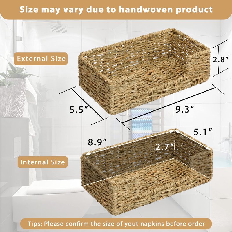 - ✅[Handmade and Safe] Every holder is 100% Handcrafted from Seagrass, this napkin basket have smooth ends of corners and will not cause any scratch.