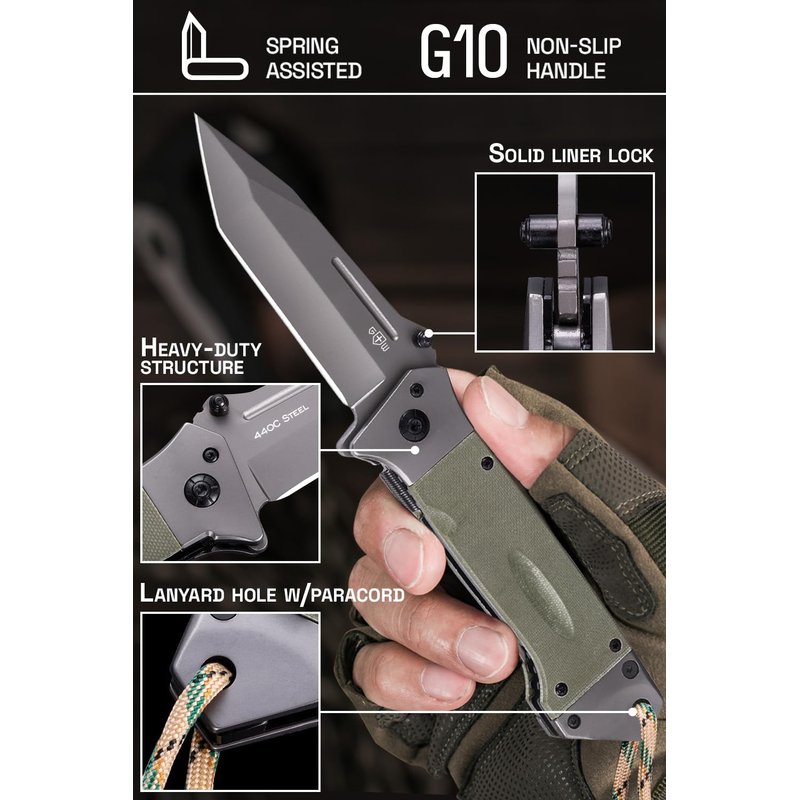 Grand Way Pocket Knife Spring Assisted Knife - Folding Tactical Knives Japanese Tanto Blade Knives - Best for Camping Hiking EDC Work Knife Birthday Christmas Gifts for Men 6688