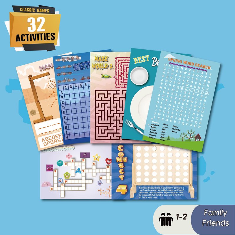 - 32 Activity Pads: Including mega popular educational games like Tic-Tac-Toe, Connect 4, Battleship, Hangman, Puzzle, Sudoku, Word Search, Categories, Sketch practice and more. Get these fun games once for all in 2 pads. Travel sized fit well in your purse or glove compartment.