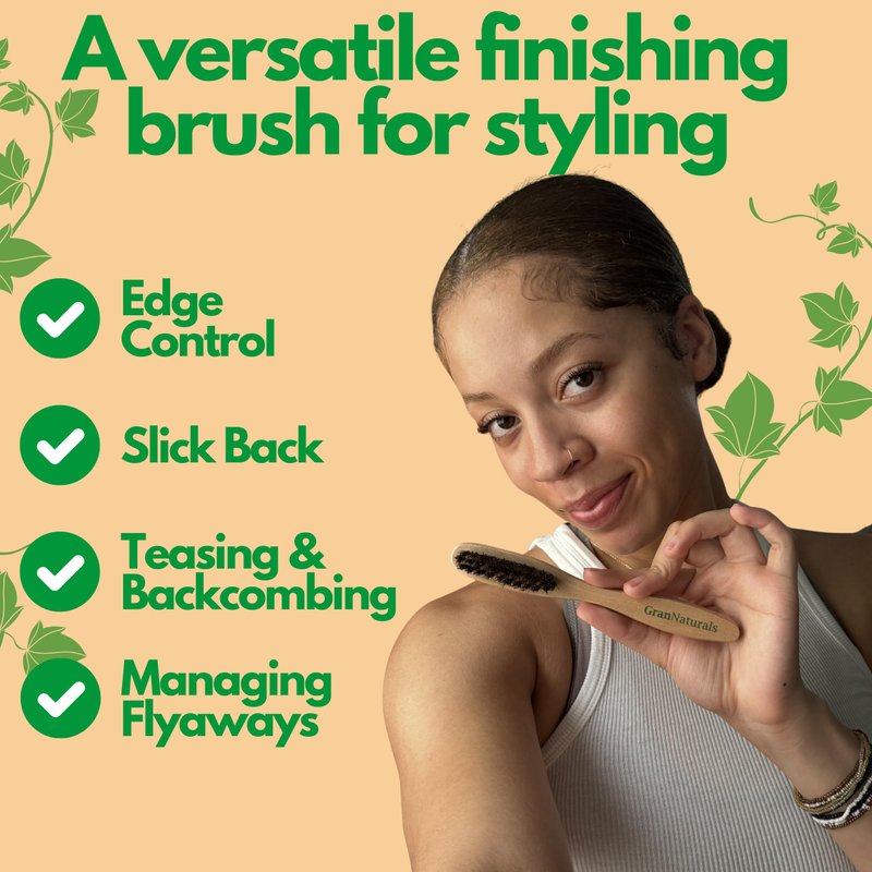 GranNaturals Teasing Boar Bristle Brush for Slicking Back Hair, Smoothing Ponytail Bun, Backcombing, Edge Control & Hair Sectioning - Wooden Slickback Hairbrush for a Sleek & Smooth Hairstyle