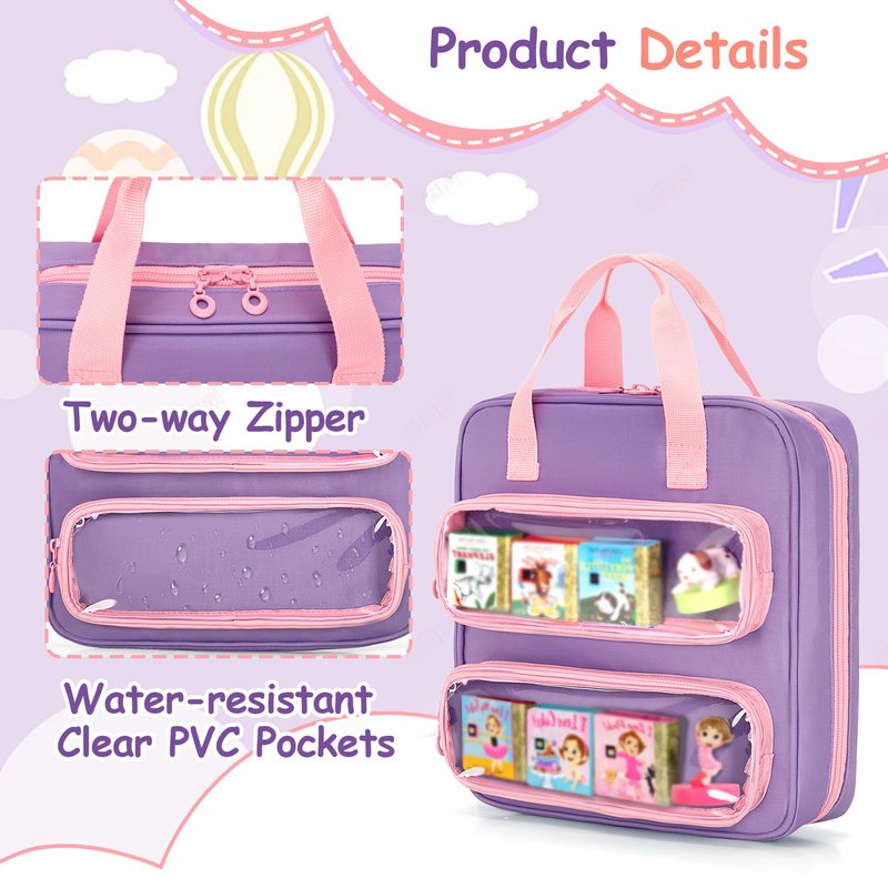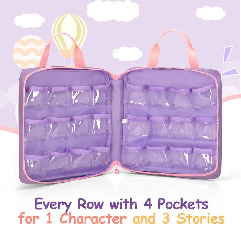 - Well-Organized: The storage room is designed for each set of books (1 character + 3 cartridges), with two rows of PVC zipper front pocket and 6 rows of PVC main compartment, which can accommodate 8 dolls and 24 books (8 complete sets of cartridges)