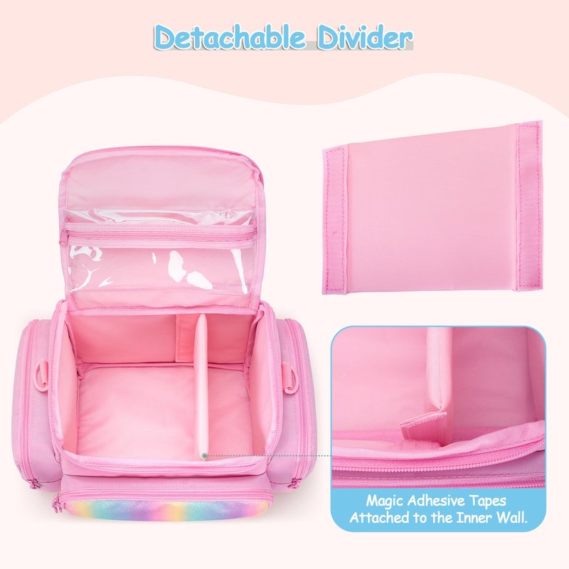- EXTRA STORAGE POCKETS: Top and front transparent pvc pocket are compatible with Toniebox figures, which can display the figures well; the front mesh zipper pocket can hold charging cable; side pocket hold charging station