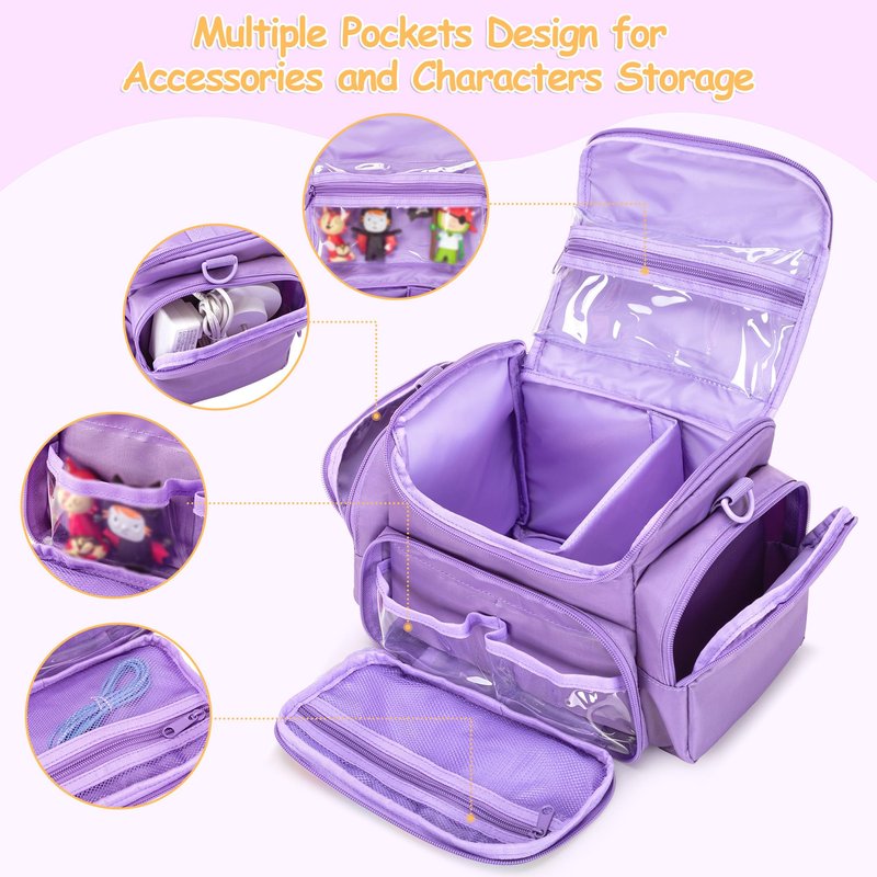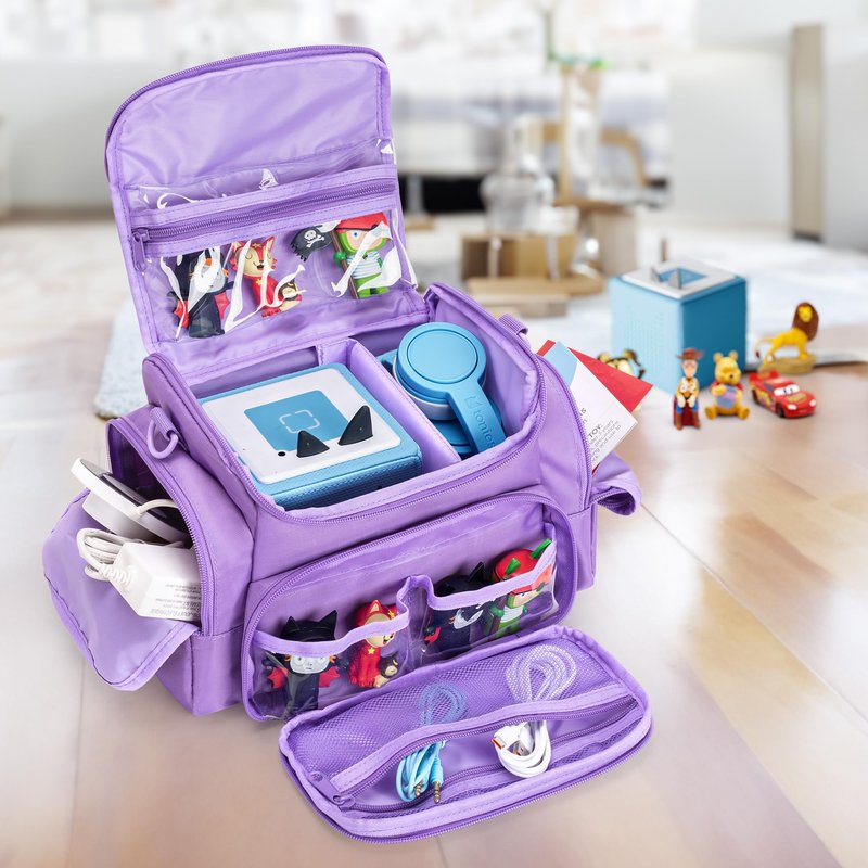 - EXTRA STORAGE POCKETS: Top and front transparent pvc pocket are compatible with Toniebox figures, which can display the figures well; the front mesh zipper pocket can hold charging cable; side pocket hold charging station