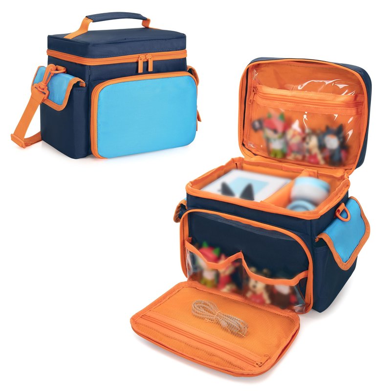 - EXTRA STORAGE POCKETS: Top and front transparent clear windows are compatible with Toniebox figures, you can see what you want at first sight; The front mesh zipper pocket can hold charging cable; side pocket hold charging station