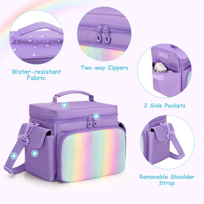- OCCASION: All three colors are vivid, in particular, the pink and purple front pockets have rainbow sequins. You can choose your loved bag for any occasions, such as bedtime, hiking, travel